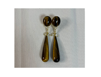 Brinco em Olho de Tigre e Topázio Incolor Prata 950.