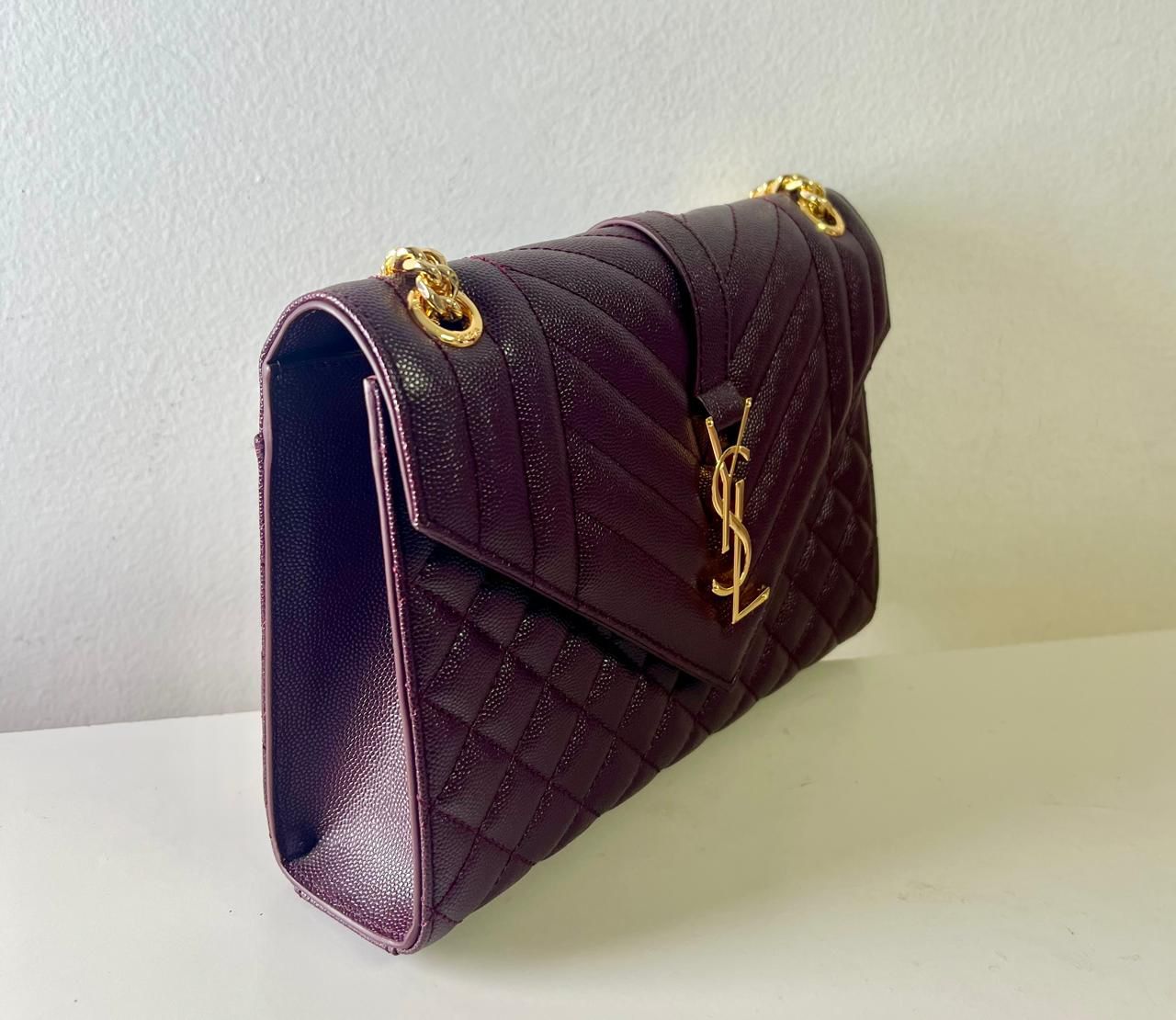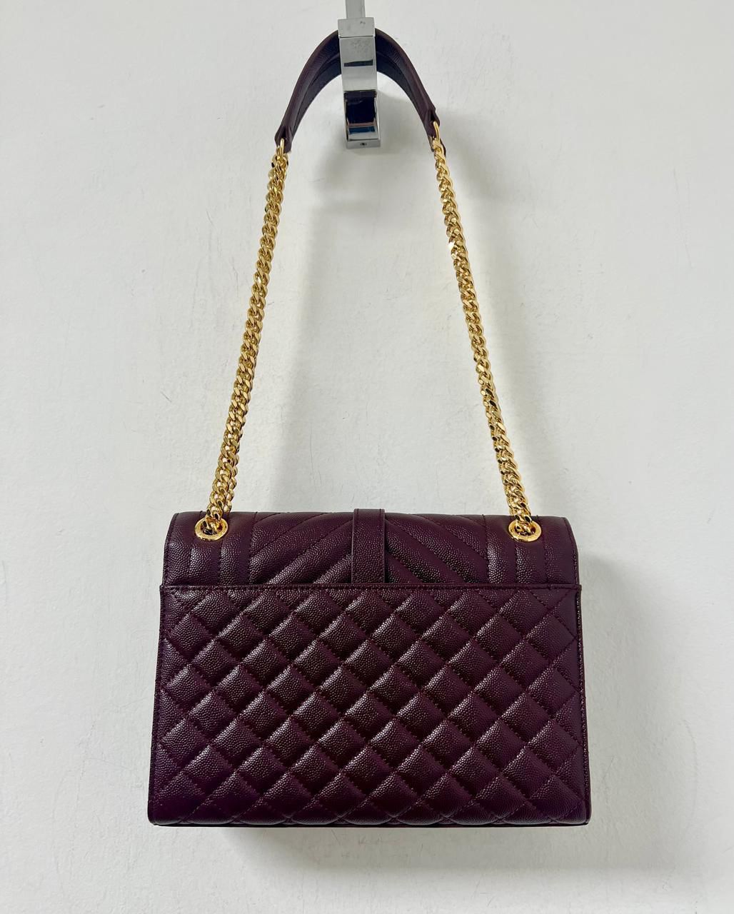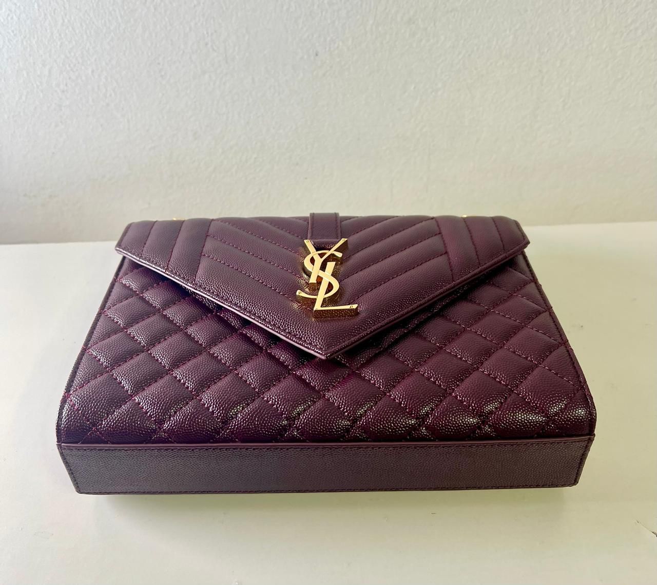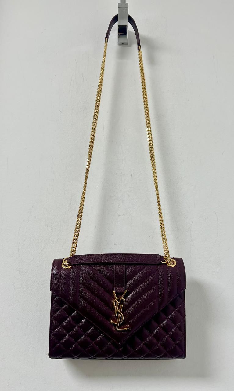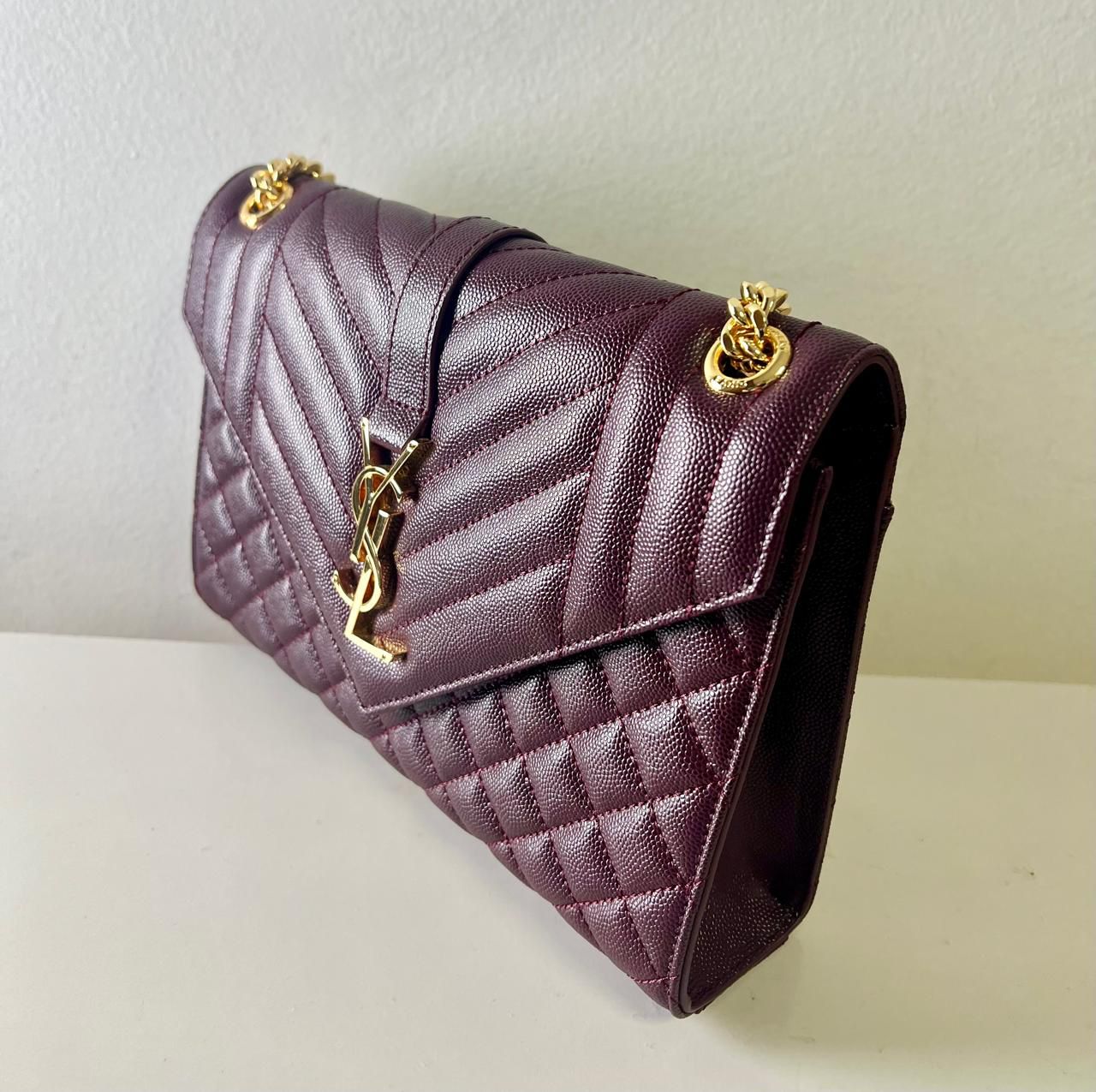 Saint Lauren Envelop Tamanho médio em couro grain de poudre cor burgundy. Impecável.